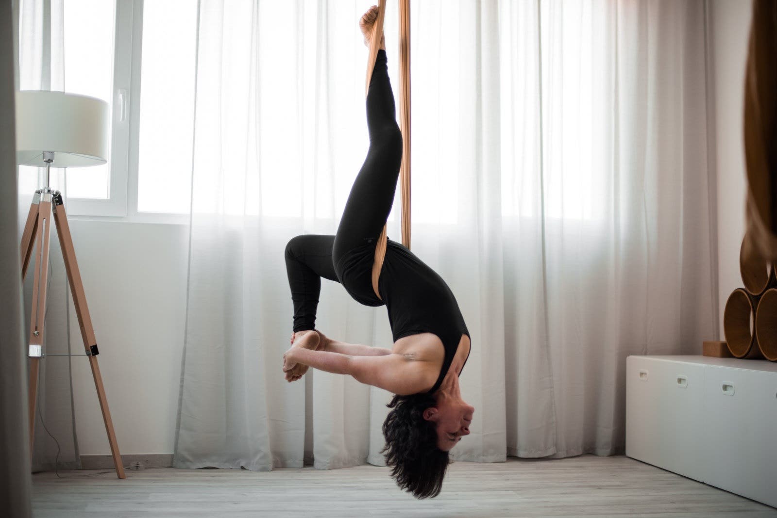 Formation de 50 heures de professeur de yoga aérien certifiée par la World Yoga Alliance.